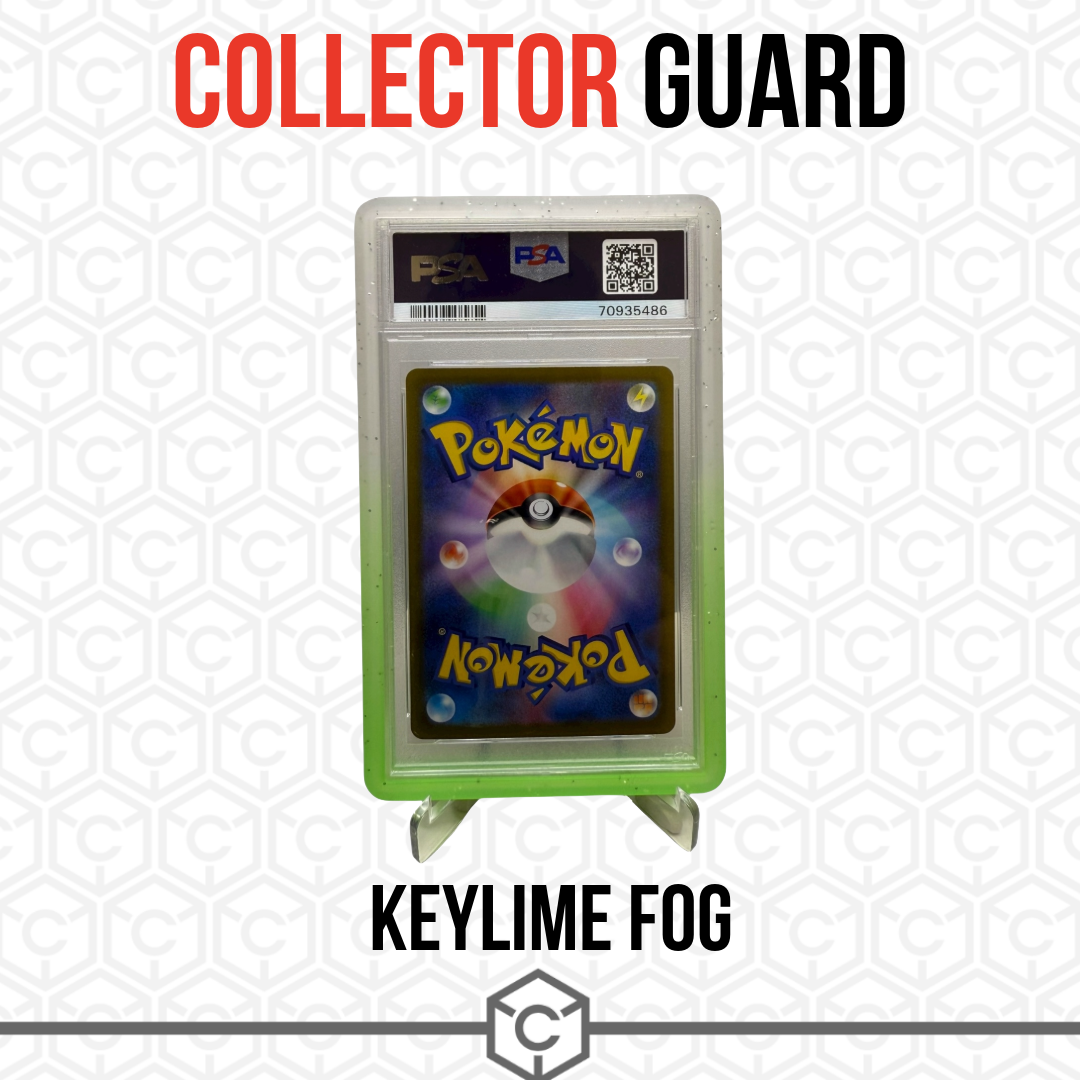Protect your rarest cards with Keylime Fog. This unique graded card bumper features a stunning, high-contrast aesthetic, blending a vibrant, neon lime green that fades seamlessly into a semi-translucent, smoky white.