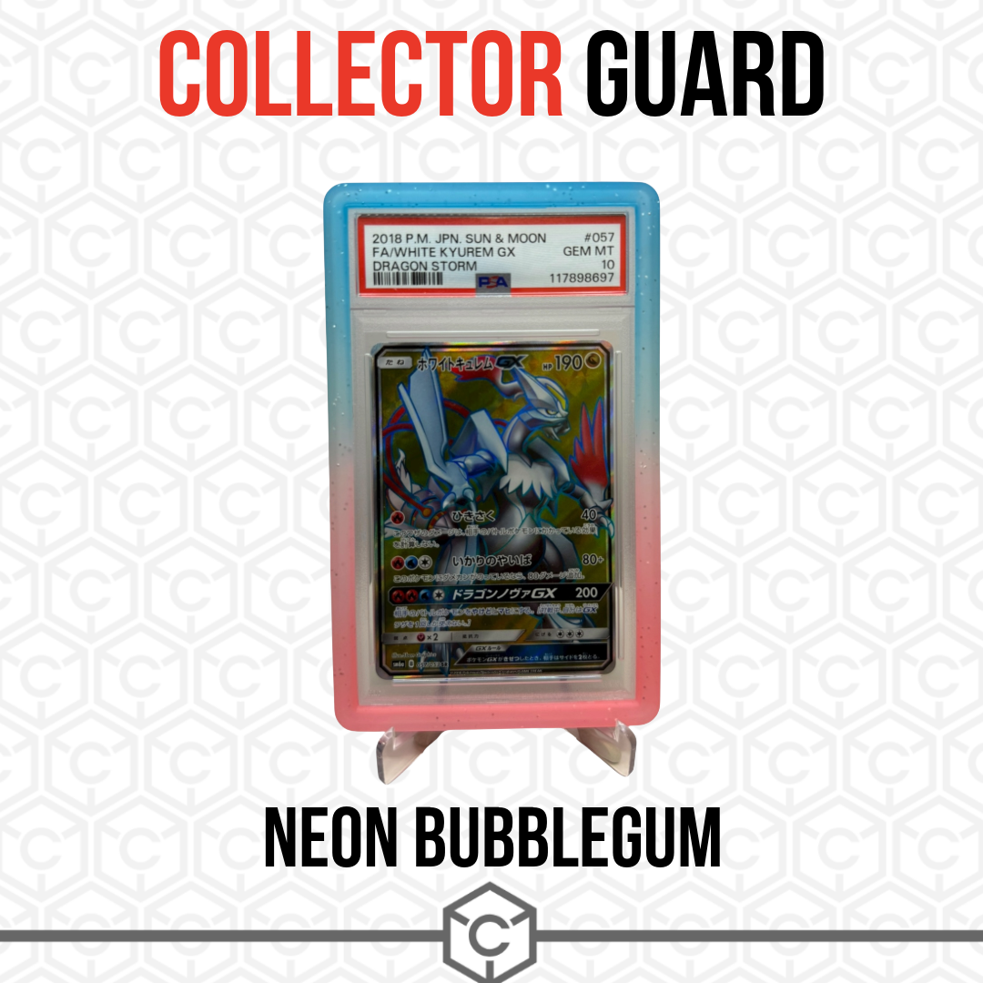 Elevate your graded card display with the electric energy of Neon Bubblegum. This vibrant frame is designed for the collector who demands both top-tier protection and unmistakable style. Featuring a dazzling, high-contrast fade from hot neon pink to electric lime green, the Bubblegum gradient captures the nostalgic pop and fun of classic candy while providing durable defense for your precious slab.